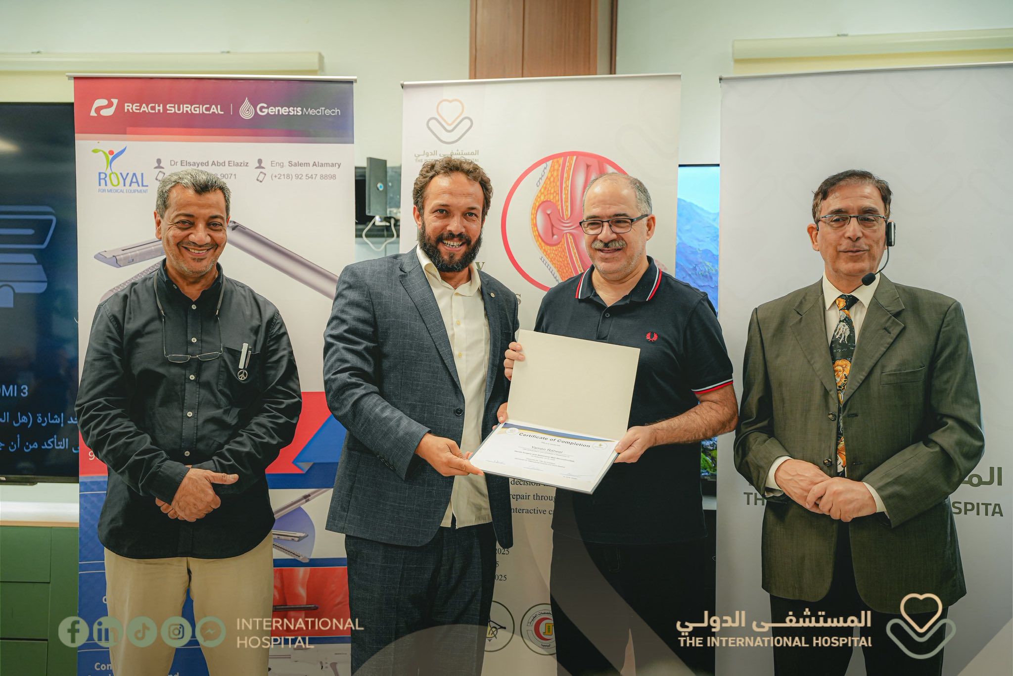The International Hospital in Tripoli proudly hosted an international medical seminar focused on the latest techniques in hernia surgery, with the participation of leading surgeons and medical experts. The event included hands-on training, knowledge exchange, and live demonstrations of modern surgical methods aimed at improving patient safety and recovery outcomes.